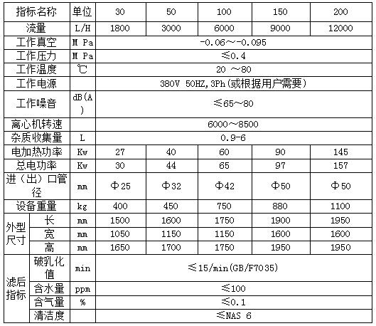 帶封閉外罩離心式濾油機參數表: