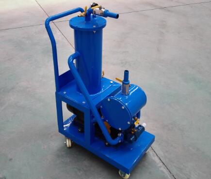 濾油機的結構包括:油泵、初濾器、聚結分離器、靜電吸附器、脫色凈化器、真空蒸發罐、過濾裝置、冷凝器和真空泵等部分。不純凈的油在大氣壓強的作用下,經初濾器進入真空蒸發罐。待油加熱到60度到70度后噴入真空室,成為細小的油滴。油中的水分快速蒸發為水蒸汽,進入冷凝器冷凝后排出。未冷凝的水蒸汽則由真空泵排至大氣中。匯集在真空蒸發罐底部、已經蒸發脫水的油被油泵送入過濾裝置,濾去油中的固體雜質,進一步吸收掉微量水分。真空濾油機能顯著地提高提純油的效果。